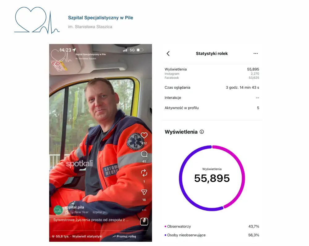 W zależności od grupy odbiorców, do której kierowana jest komunikacja danej marki, opracowujemy kampanie na konkretne platformy. Jak widać na tym przykładzie, profil Szpitala Specjalistycznego w Pile posiada liczne grono odbiorców na Facebooku – co zgodnie z danymi demograficznymi i określeniem grupy docelowej – odpowiada naszym pierwotnym założeniom.